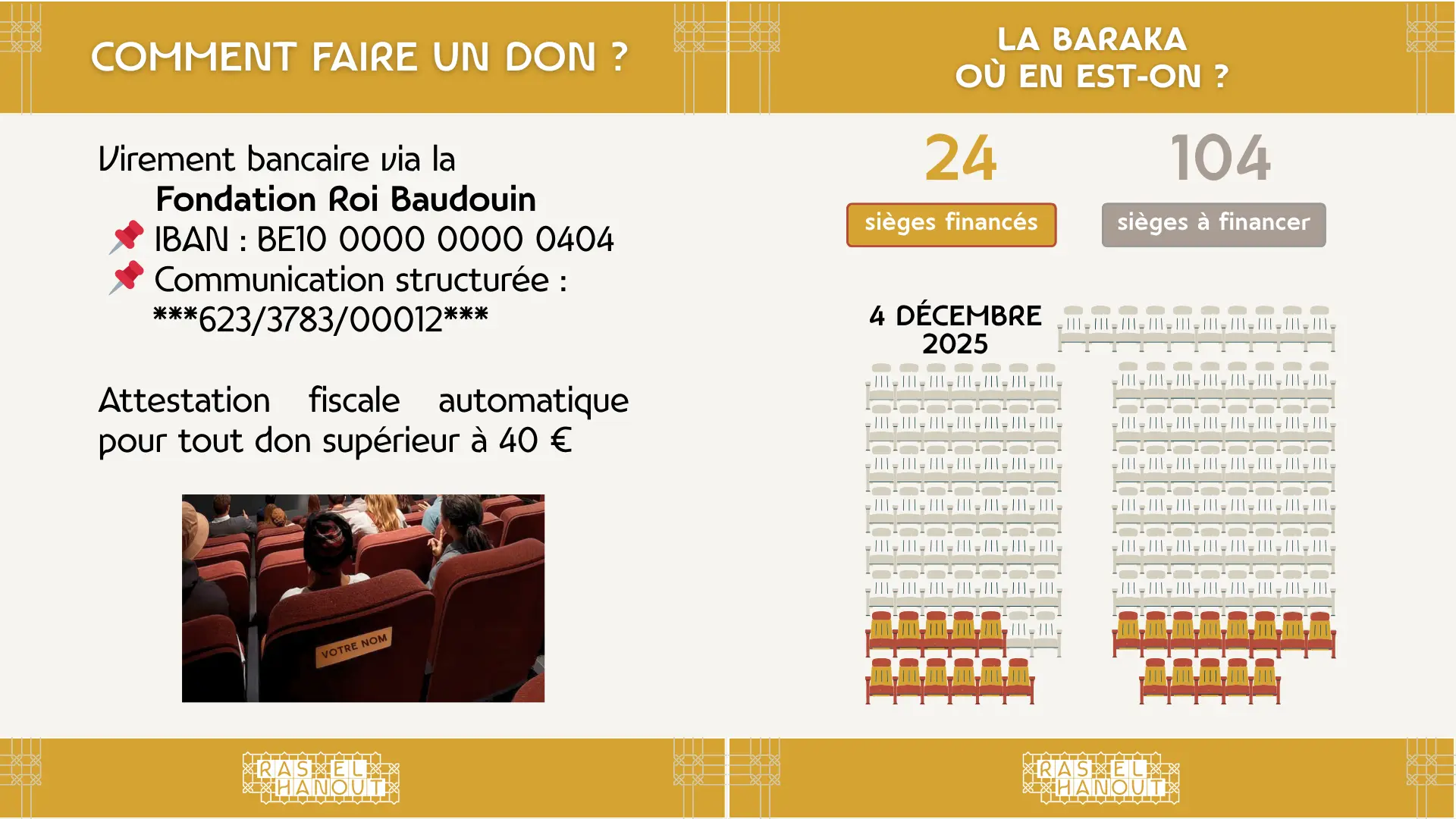 Dankzij de fiscale aftrek van 45 %*, kost een schenking van 1 000 € je in werkelijkheid slechts 550 € netto. (*Aftrek geldig tot 31 december 2025.)