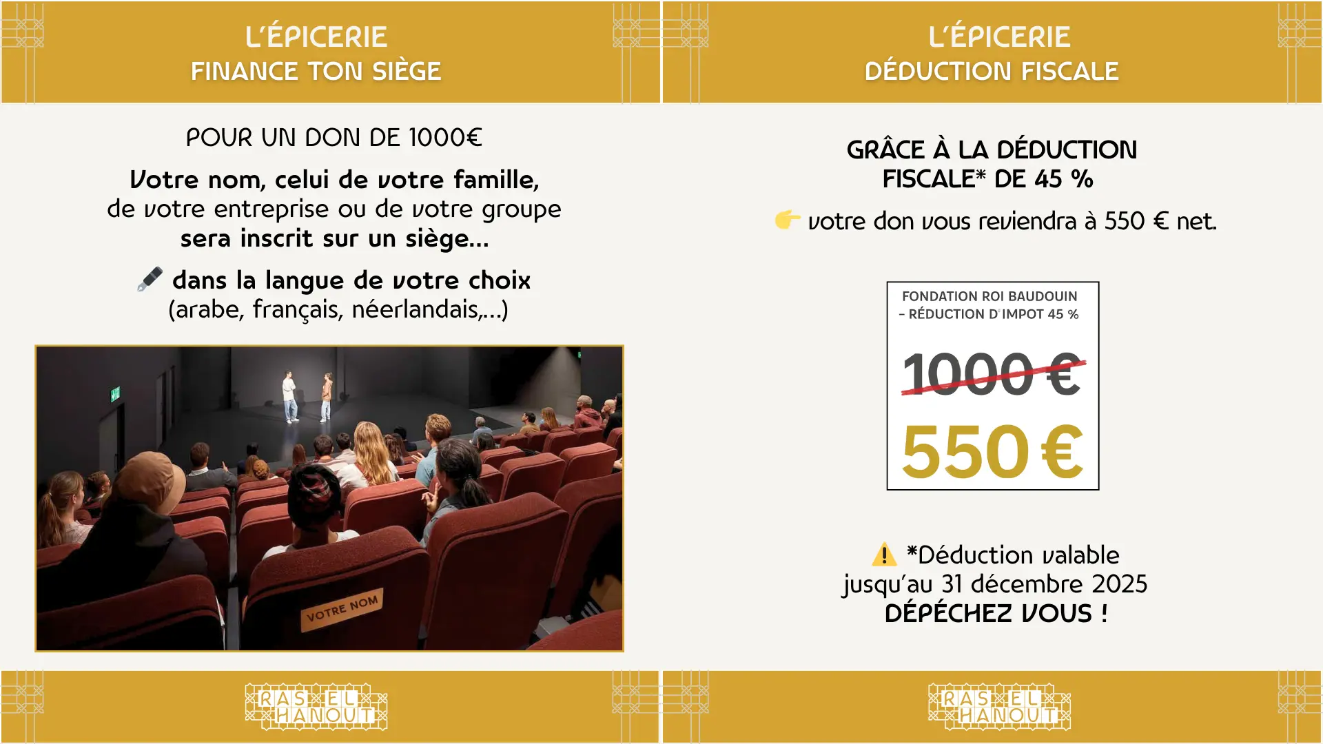L’Épicerie is een unieke en essentiële plek in Molenbeek, een centrum waar ieders verhalen tot leven komen. Door de renovatie van deze plek te steunen, geef je L’Épicerie de kans om verder te groeien als het theater van onze verhalen. Wacht niet langer — doneer vandaag zodat deze plek morgen kan blijven verwelkomen, creëren en transformeren.