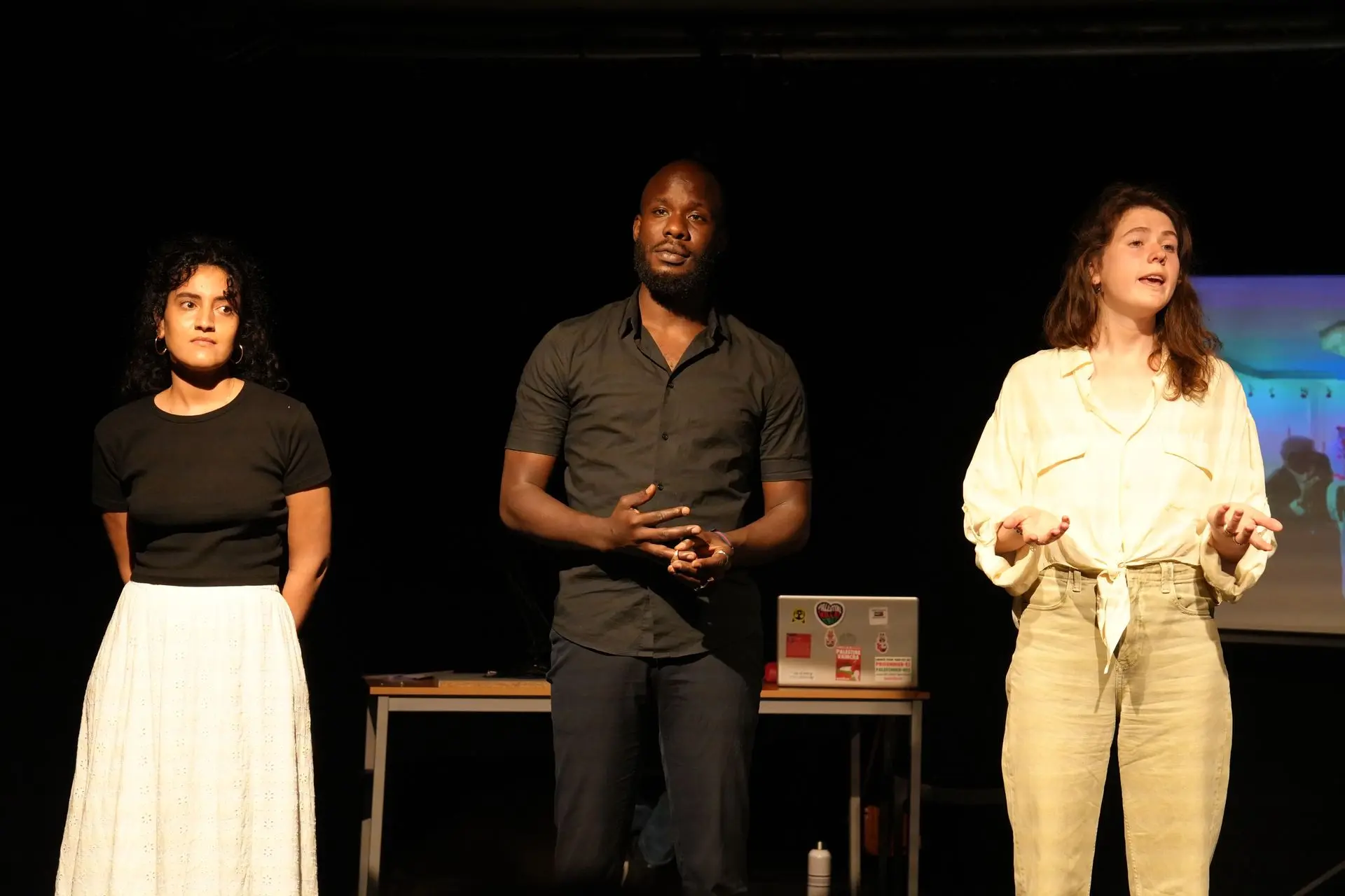 Intitulée Monologues de Gaza, cette performance s'inscrit dans une démarche de théâtre engagé, pour faire entendre des voix palestiniennes à travers une création forte, ancrée dans l’éducation permanente et portée par la solidarité.