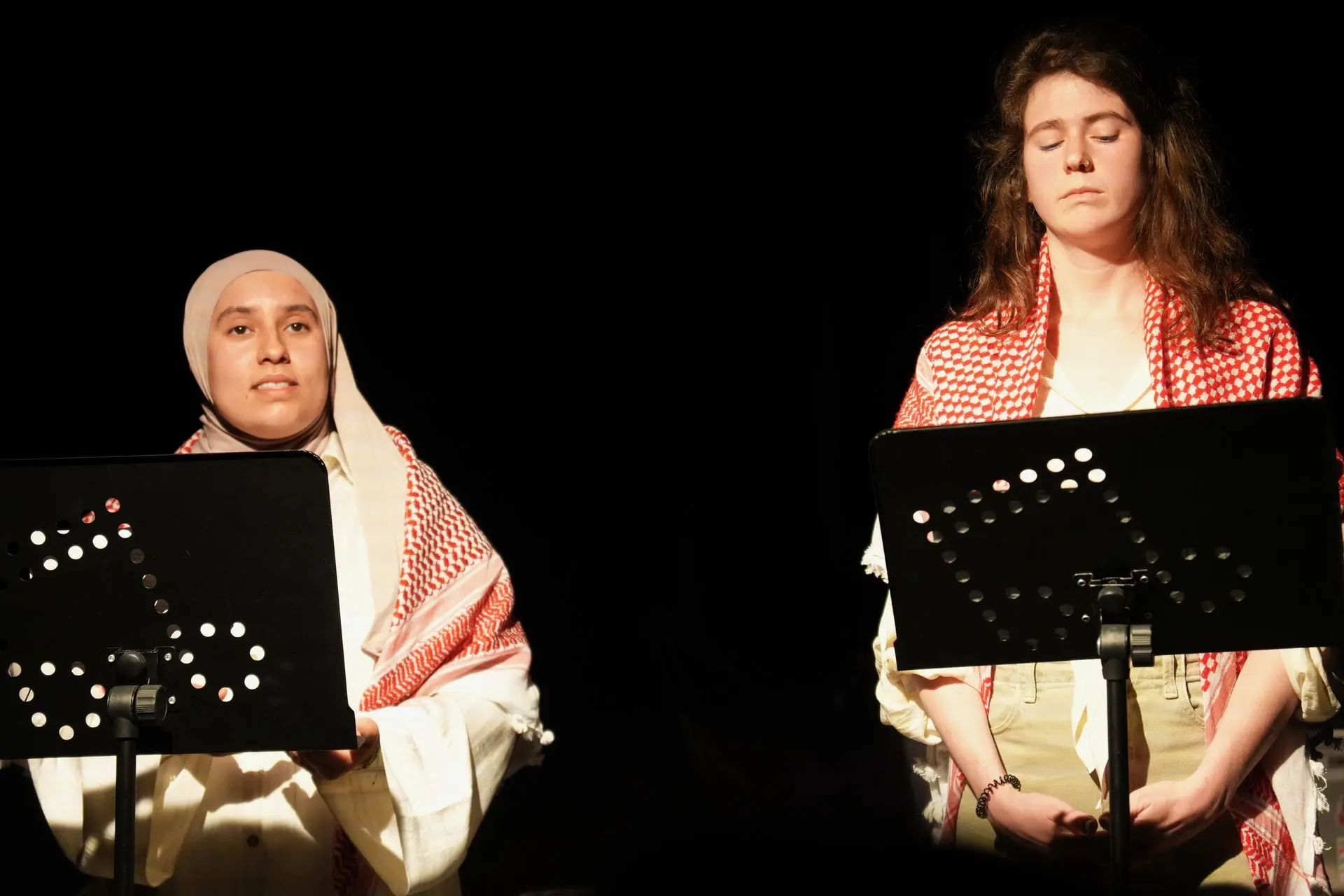 🎭 Monologues de Gaza est une lecture publique de textes du Théâtre Ashtar, lus par trois jeunes femmes engagées de Ras El Hanout, ayant participé à la création du spectacle En direct de Gaza.
